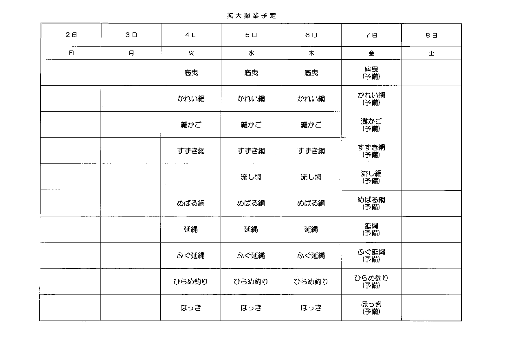 来週の操業予定(R7.11.14更新)