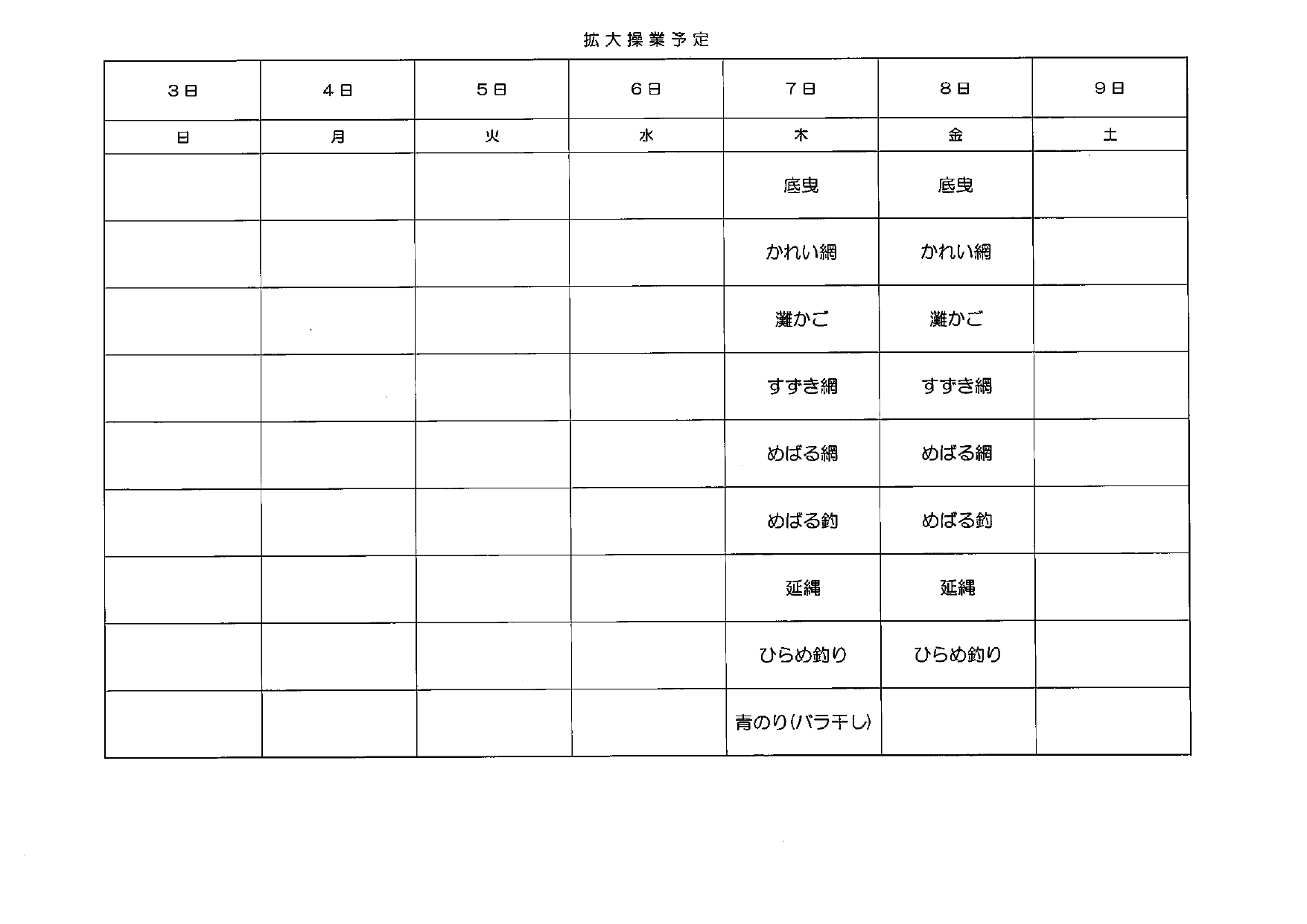 再来週の操業予定(R8.4.24更新)